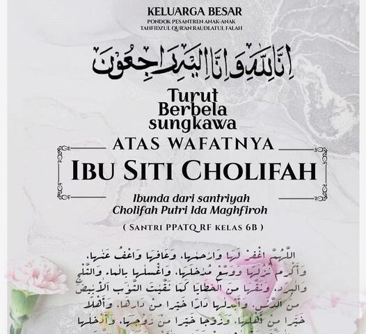 Baca selengkapnya TAKZIAH SANTRIYAHTelah berpulang ke Rahmatullah, Ibu SITI CHOLIFAH ibunda santriyah aktif Cholifah Putri Ida Magfiroh kelas VI B MITQ-RF asal Kendal. Kami keluarga besar Pondok Pesantren…