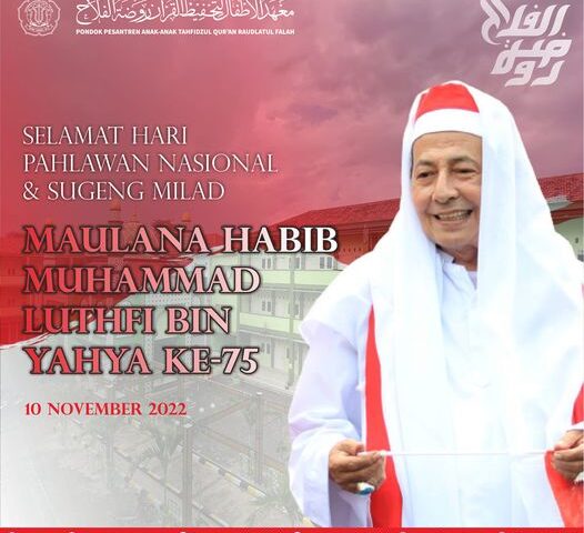 Kami Keluarga Besar Pondok Pesantren Anak-anak Tahfidzul Qur’an Raudlatul Falah Mengucapkan Selamat Memperingati Hari Pahlawan Nasional 2022 & Sugeng Ambal Warso Guru kami, orang tua…