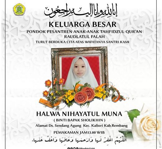 Bersama guru dan santri dalam mengenang perjalanan beliau 1000 hari kepulangannya ke hadirat Ilahi, kami keluarga besar Pondok Pesantren Anak Anak Tahfidzul Qur’an Raudlatul Falah…